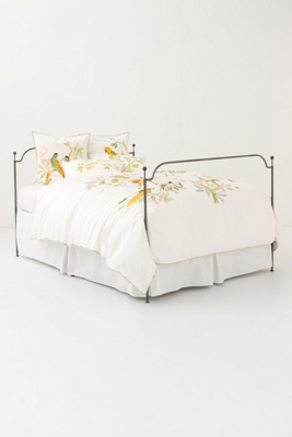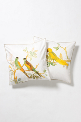 Anthropologie. It consists of organic cotton on a fresh white background and a whimsy hand-painted look of stunning imagery with a bright yellow and green parrots, macaws and cockatoos. It's so cheerful and beautiful perfect backdrop for a comfy weekend in bed!!